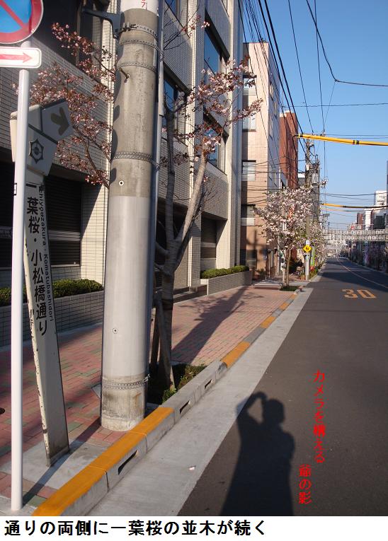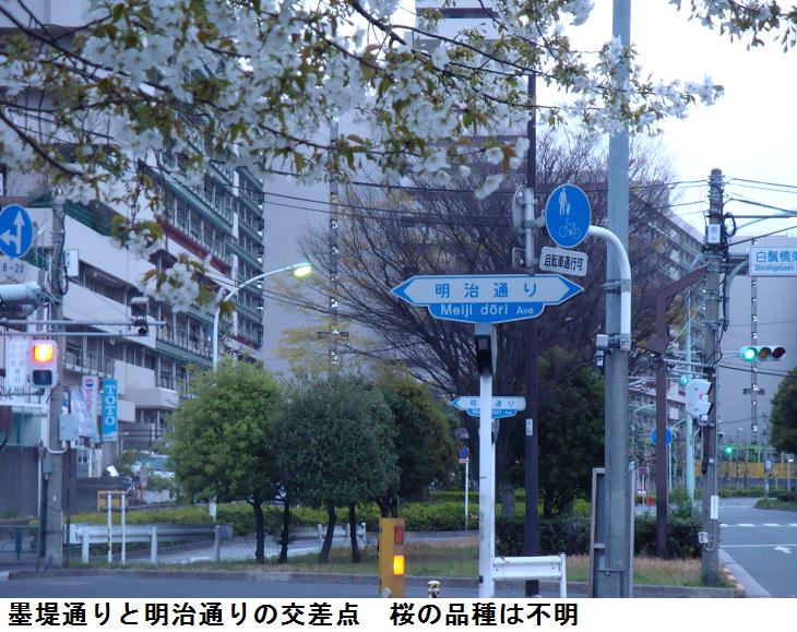 今日で、もう3月もおしまい。昨日と同じコースを取って墨堤通りを北上。明治通りとの交差点で品種はわからないが桜が7分咲き。花は白っぽく、緑色の葉も出ている所を見ると、ソメイヨシノではないことは確かである。