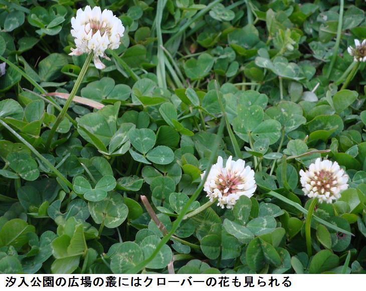 汐入公園の高台の広場に上ってみるとクローバーが、白い花を付けている。ほんのちょっと四葉のクローバーを探しては見たが、面倒くさくなって止めてしまった。