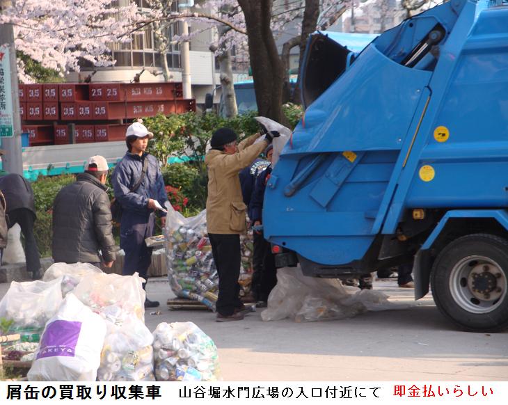 明治通りを横切ると件の落書き遊歩道を通って、桜橋から山谷堀水門前広場を通って、帰宅した。広場の入口には空缶の買い取り収集車が来ていて、現金で買い取られて収集されていた。