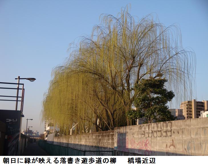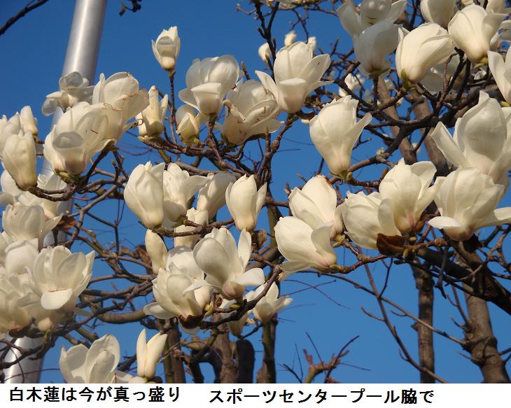 白鬚橋を渡り、件の落書き遊歩道を川に沿って下るところに、2・3本の大きな柳の木があるが、朝日を浴びて緑がいっそう映えて、春を呼び込んでいるようだ。野球場の前のソメイヨシノは大きく膨らんで、間もなく色づきつき末には花を開くだろう。スポーツセンターのプール脇の今を盛りと咲き誇っている白木蓮を眺めながら帰途に着いた。