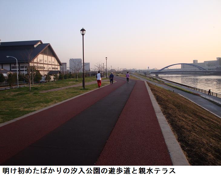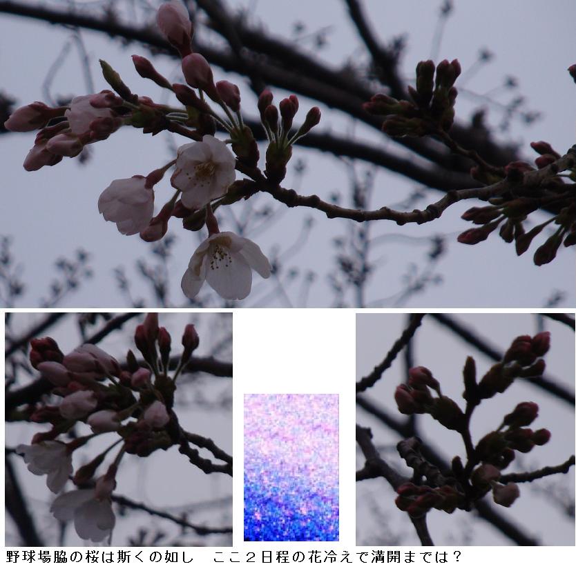 汐入公園を南下して、白鬚橋西詰めから川沿いの遊歩道を通って帰宅した。野球場の脇の桜並木の花の様子を毎朝のように撮っているが、ここ2・3日の花冷えの天候で、あまり変わり映えしない。