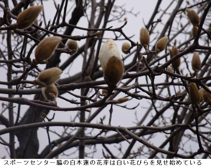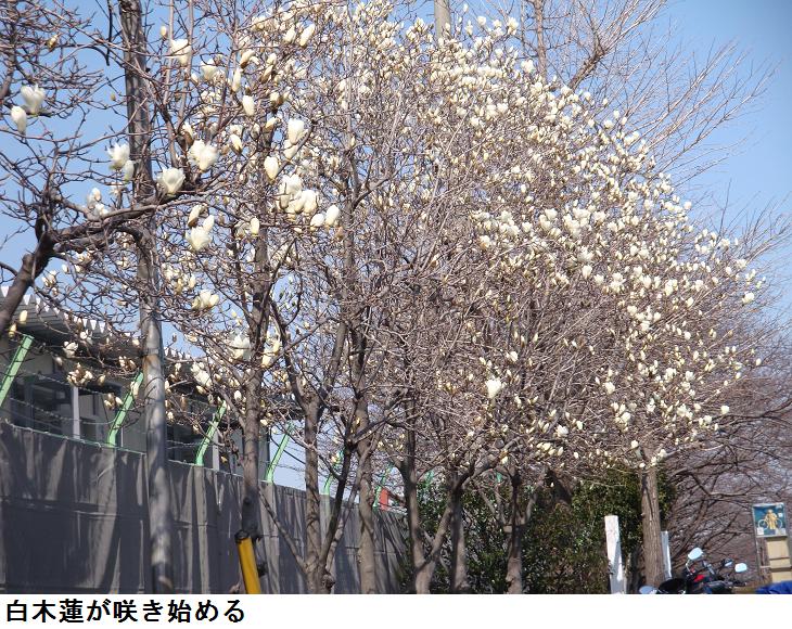 今日は日曜日。婆様が百花園に行こうと言い出した。午後から雨模様というので昼飯前に出掛けた。スポーツセンター脇の白木蓮は白い花びらを露にし始めた。隅田川西岸の遊歩道を通って白鬚橋を渡る。