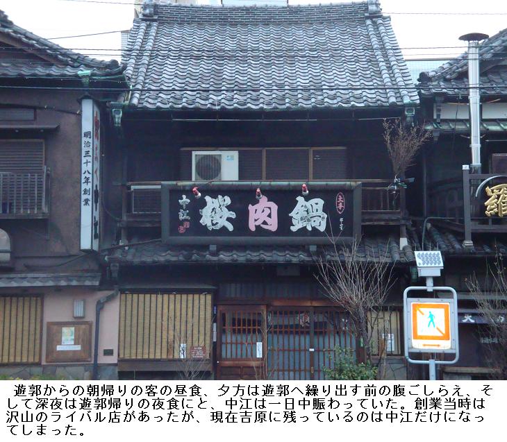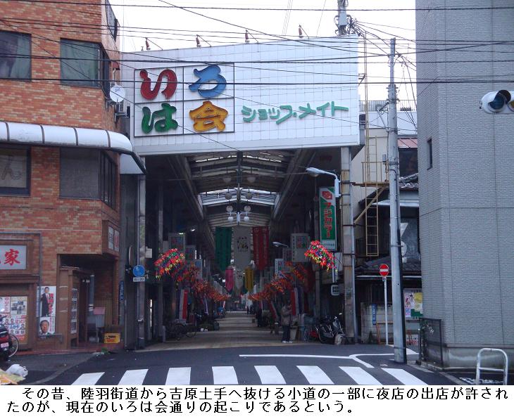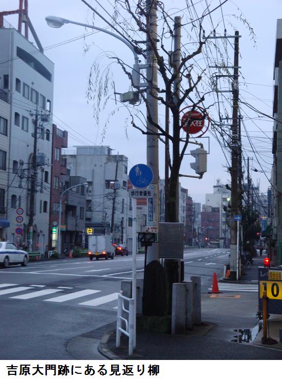 吉原歓楽街への正面玄関が大門であった。治安目的は勿論、遊女たちの逃亡を防ぐため、出入はこの大門一箇所のみとされ、江戸時代には黒塗り木造のアーチ型楼門が建設され、明治期には2代目となる鉄門が築かれたが、明治44(1911)年の大火で焼失。関東大震災を機会に撤去されたということである。