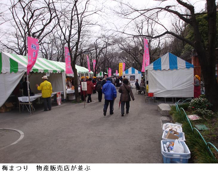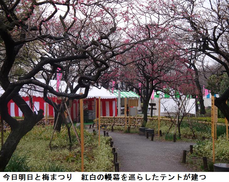 隅田公園の梅園では、今日・明日「梅まつり」が行われることになっており、梅園の入口にはテントが立ち並んでいた。