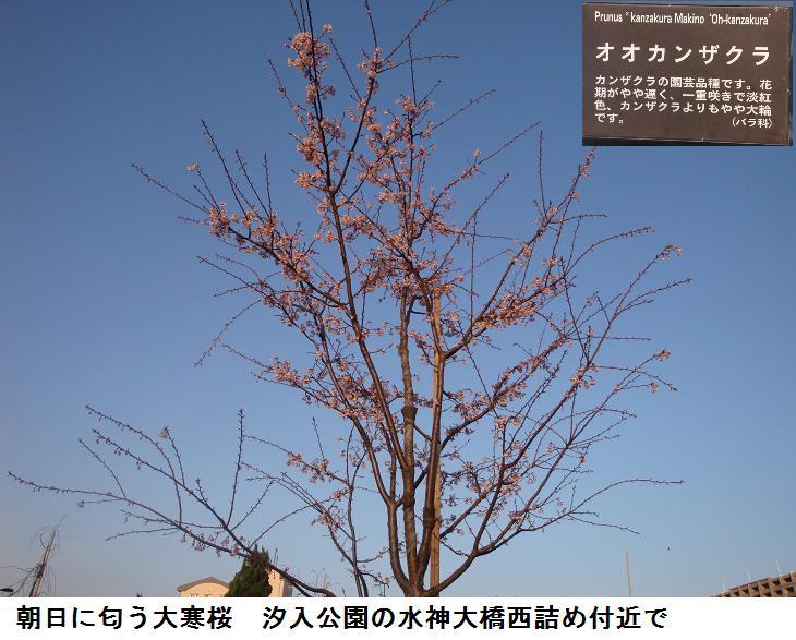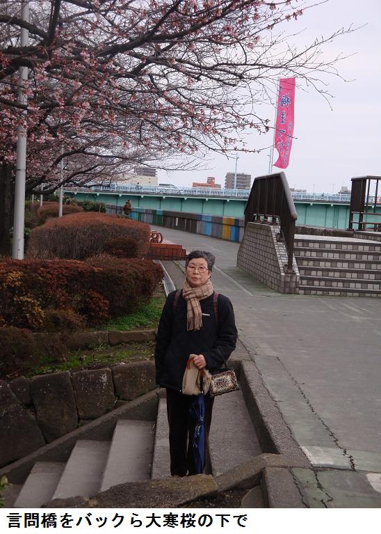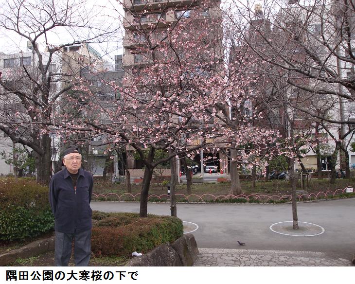 松屋から隅田公園に入り、桜のうちでも早咲きの大寒桜の下で、写真を撮り帰宅した。