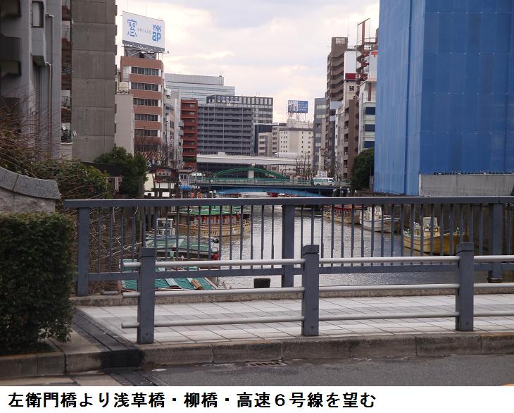 さらに、総武線のガードをくぐり、京葉道路にでると、右折して両国橋に向けて西進、回向院前を通って、両国橋をわたる。何時もなら、柳橋を渡るとそのままはす違いに道を取り、江戸通りを北上して帰路に着くのだが、何となく神田川沿いに歩いてみたくなり、南岸を浅草橋まで出る。浅草橋を渡ると、さらに神田川を上ってみたく、北岸沿いに左衛門橋まで来てしまった。