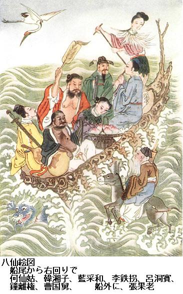 昨年12月29日のブログで記したように、日本の七福神と同じような「八仙」というのがある。中国の民間に伝えられている8人の仙人のグループのことで、漢鍾離(かんしょうり)、張果老、韓湘子(かんしょうし)、李鉄拐(りてっかい)、曹国舅(そうこくきゅう)、呂洞賓(りょどうひん)、藍采和(らんさいわ)、何仙姑(かせんこ)の8人をいう。