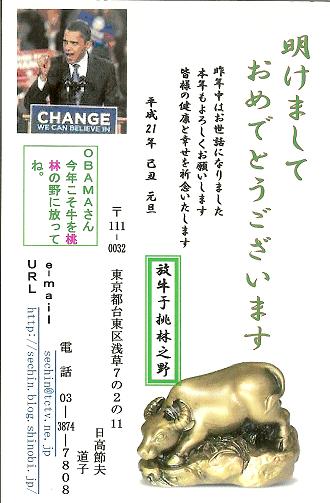 という訳で、今年は丑年でもあるし、賀状のテーマをこの地球上からの戦火の終結を願って、『放牛于桃林之野』とした。叶わぬ願いとは知りつつも、少しでも戦禍がおさまることを願うものにした。メールは判っていても、住所不詳の方が何人かいらっしゃるので、このブログで挨拶に代えさせていただきます。