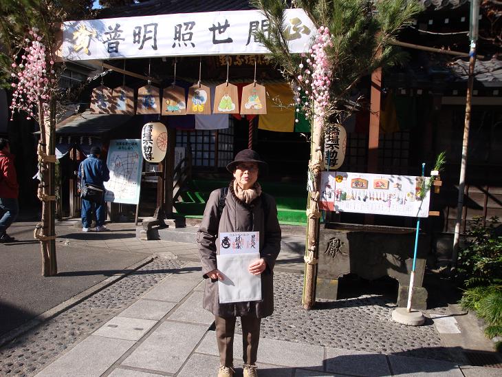 今年は婆様は少々疲れたということで、昼飯後爺々一人だけで、東武伊勢崎線で鐘ヶ淵まで出た。途中業平橋で東京スカイツリーの建設現場が見下ろされる。今日は1月初め仕事始めで、現場の作業は既に始っていた。鐘ヶ淵で下車、多門寺まで北上し、昨年とは逆向きに隅田川七福神巡りをした。