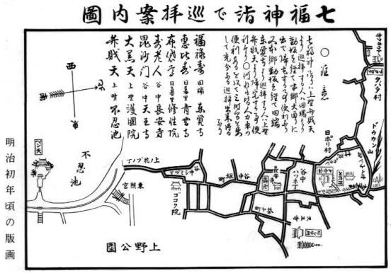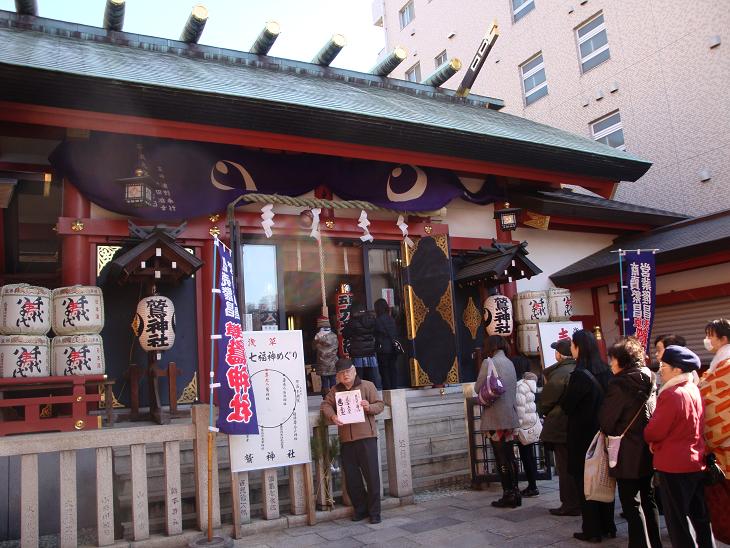 七福神を祀る社寺を巡りながら、それぞれの分体をうけて宝舟にのせていく趣向があるといい、江戸の風流人らしい発想ともいえそうなので、これをやってみることにした。