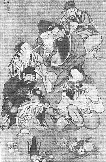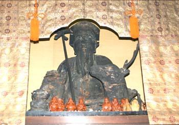 呂洞賓:呂祖ともいい、唐代の人。背に剣を負い、手に払子(ほっす)を持っている。放浪の途中漢鐘離に出会い、丹薬の製法を教わり、後に終南山に篭って仙術をおさめた。10の誘惑に打ち勝って魔法の剣を授かりそれを背負っている。なぜだか理髪屋の職業神であるという。