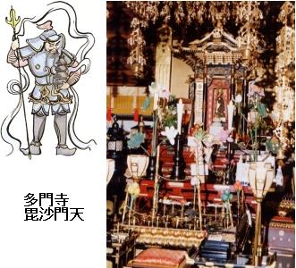 隅田川七福神めぐりの道順を略記すると、まず言問橋上流の土手下にある三囲神社(恵比寿・大國)から、社前の通称向島見番通りを真直に北に進むと、左側隅田公園寄りに大きな山門のある弘福寺(布袋尊)に至り、すぐ隣接して長命寺(弁財天)がある。ここから墨堤を約500mほど行って地蔵坂を下り、左に折れると百花園(福禄寿)である。墨堤畔に出て白鬚神社(寿老神)に詣で、再び堤上を北へ。白鬚橋の交差点を過ぎて、墨堤に沿って道なりに北に進み、左に白鬚防災団地、梅若塚や榎本武揚像をのぞみながら、鐘ヶ淵紡績工場の跡地(グラウンド)で右に曲がると多聞寺(毘沙門天)が在る。昨年は婆様と2人してこの順に巡った。