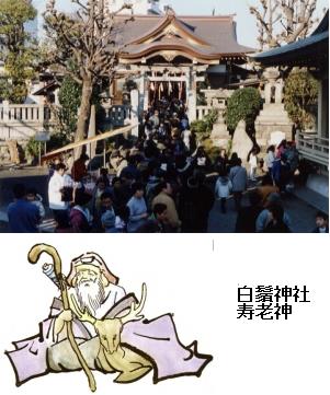 百花園園主鞠塢(きくう)は福禄寿の陶像を愛蔵していたが、ある初春の一日、百花園で風流に浸っていた文人たちが誰ともなく、その福禄寿に因む正月の楽しみ事はないものかという話になった。隅田村多聞寺の本尊は毘沙門天、須崎村の長命寺に弁財天が祀られている事が判ると、何とか七福神を揃えたいものと頭を捻り、詮索を重ねていくうちに、小梅村の三囲稲荷には恵比寿・大國の小祠があり、また、須崎村の弘福寺には黄檗禅(おうばくぜん)に関係の深い布袋和尚の木像を蔵することが判明した。残るは寿老人だが、それがなかなか見つからない。結局思案の挙句、百花園のある寺島村の鎮守白鬚明神は、白鬚と申し上げる以上、白い鬚のご老体のお姿であろうから、寿老人(神)には打ってつけだと、いかにも江戸人らしい機知を働かせ、ここにめでたく七福神が揃うことになった。