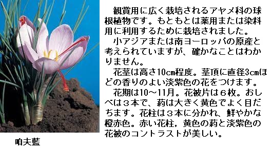 5 柘植 →ツゲ 6 咱夫藍 →サフラン