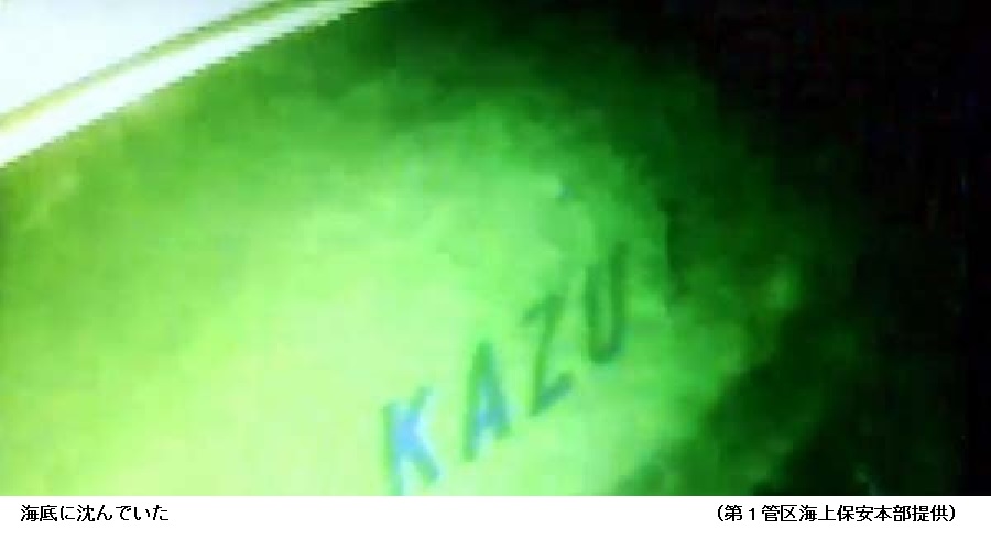 29日午前、海上自衛隊の掃海艇「いずしま」が、水中カメラで発見した。発見場所は、「KAZUⅠ」が「船首が浸水している」と救援要請していた「カシュニの滝」から沖合約1キロの海底。水深120メートルは、太陽光が届かない深さだ。