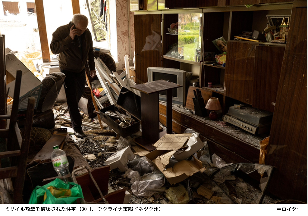 ウクライナ東部戦線膠着 米英当局「ロシア進軍に遅れ」 ―― ロシア軍が戦力を集中させるウクライナ東部ドンバス地方の戦線が膠着状態になりつつある。29~30日、米英の国防当局はウクライナ軍の抵抗に加えて運用や士気低下の問題などを抱え、ロシア軍の進軍が遅れているとの見方を示した。一方、ウクライナのゼレンスキー大統領は停戦協議を打ち切る可能性を示唆した。