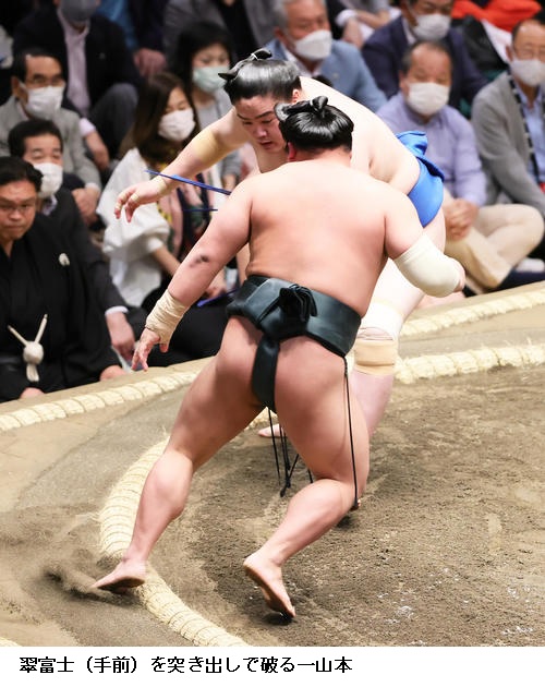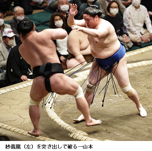 ▽一山本に妙義龍は一山本が突き出しで勝って4連勝。