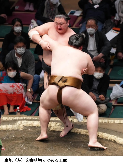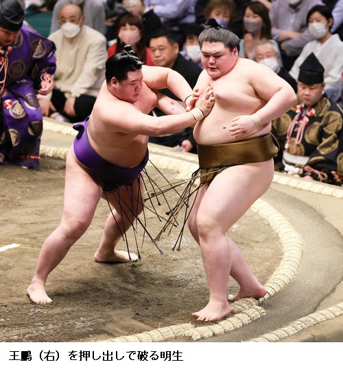 ★王鵬 思ったより低くて中に入られてしまった。(立ち合い)よく当たれなかった。立ち合いの薄さというか、相手にとってはやりやすいのかなと。相手どうかより自分の相撲なんで。しっかり前に出ていい相撲とれるよう頑張ります。