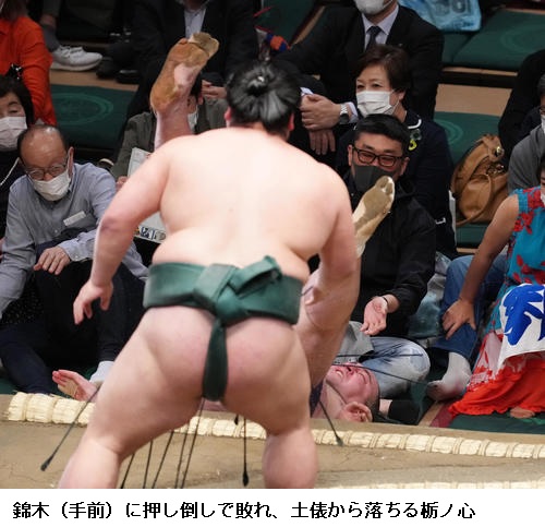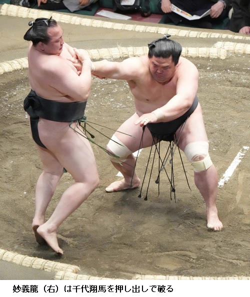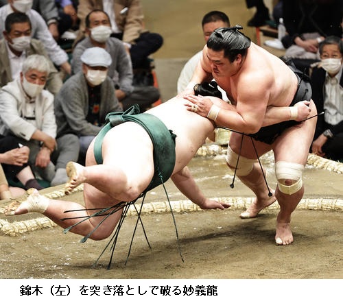▽妙義龍に錦木は、妙義龍が突き落とし。