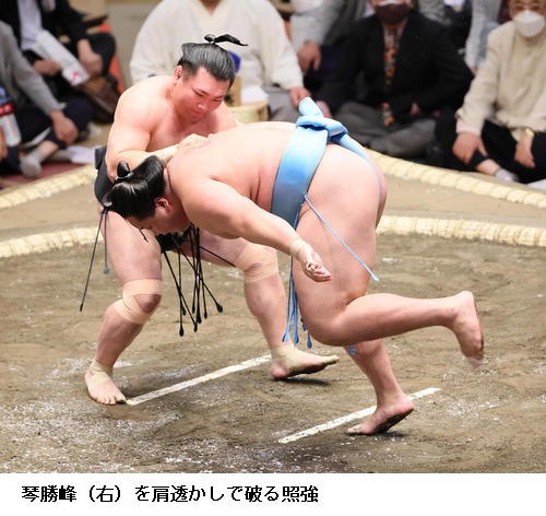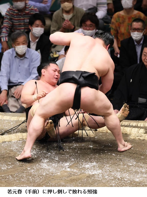 ▽若元春に照強は若元春が押し倒し。