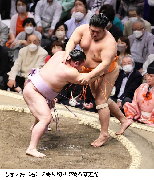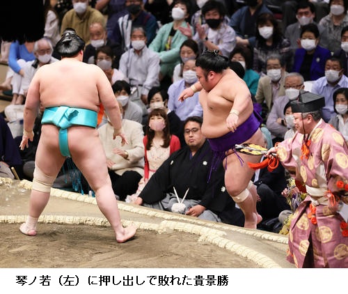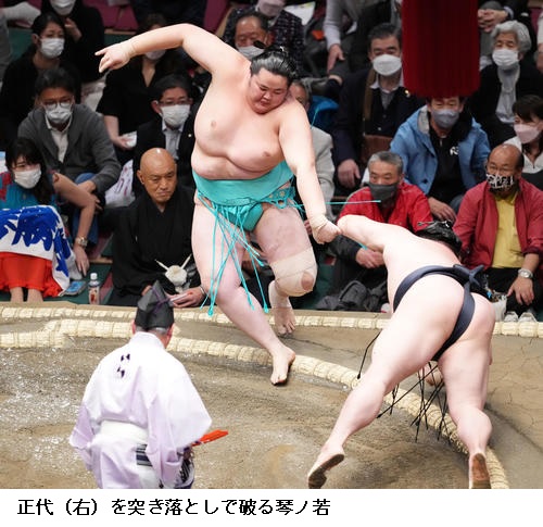 ▽敗れた琴ノ若は「立ち合いの時点で踏み込めていない。ただ、攻めているので、いいところは忘れず、切り替えていきたい」と話していました。
