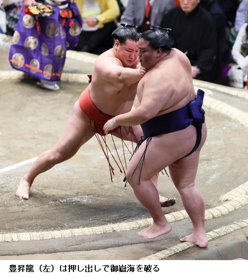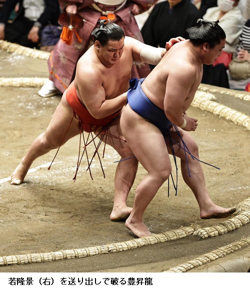 ▽若隆景に豊昇龍は、豊昇龍が送り出しで勝ちました。