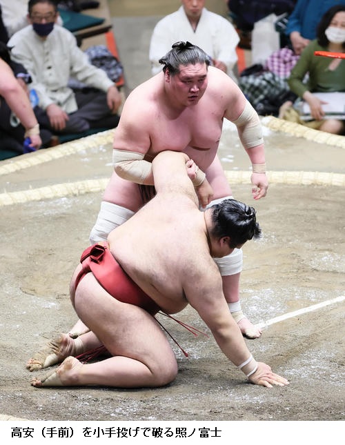 ☆照ノ富士 落ち着いてやれたかなと思います。(前に出る圧力)よかったと思います。特に自分の相撲を取りきるのは毎日同じ。変わってないです。勢いのある相手とやるのは自分も楽しいんで。そういう部分でしっかり、力をだしきれたと思う。力つけてきている若い相手とやるのは、こっちも燃えるものありますね。自分もまだ若いんでね。(壁になる意識)それももちろんあるが、勢いある相手となるとこっちも勢いをもらうというか、よしやってやるという気持ちになる。どんどんそんな力士が出てきてほしいですね。