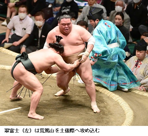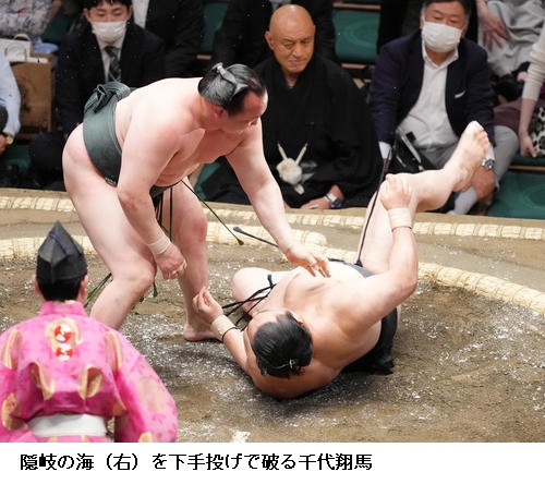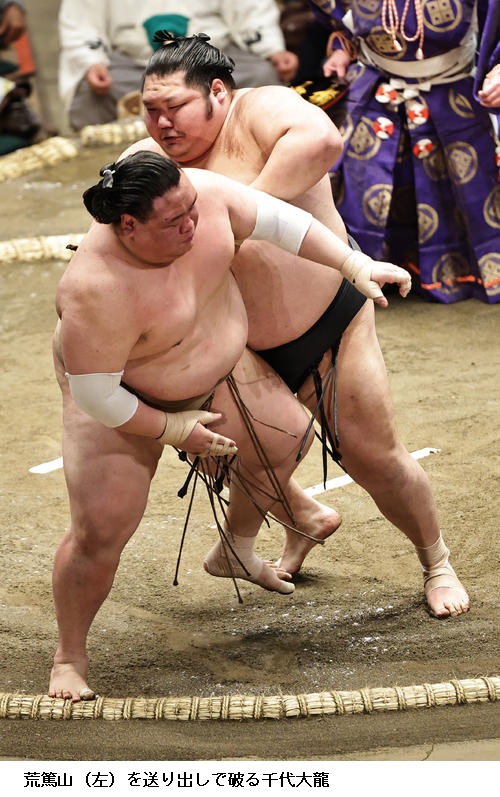 ▽翠富士に千代大龍は千代大龍がとっくり投げで初白星。