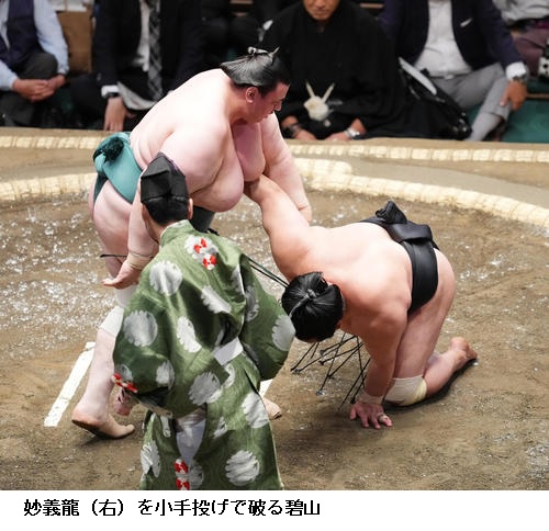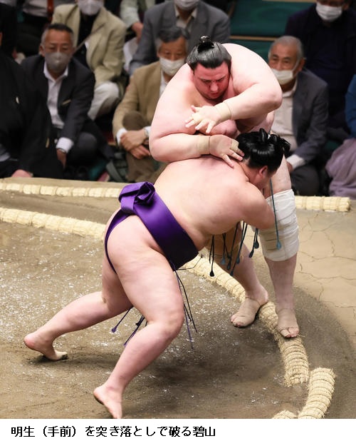 ▽明生に碧山は碧山が突き落としで勝って4連勝としました。
