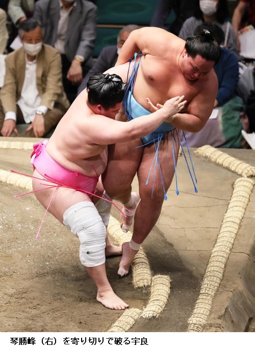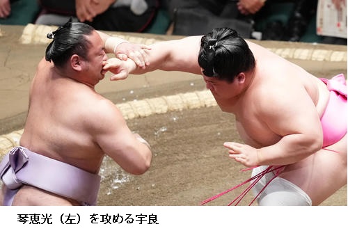▽琴勝峰に宇良は宇良が寄り切り。