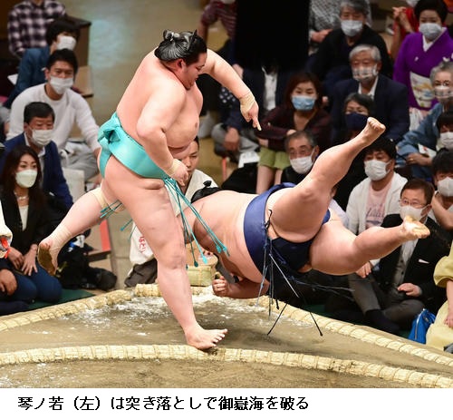▽大関 貴景勝に豊昇龍は貴景勝が突き落とし。