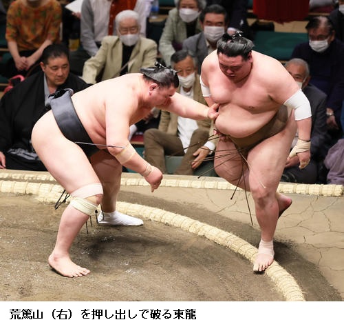 ▽荒篤山に東龍は東龍が押し出しで今場所初白星です。