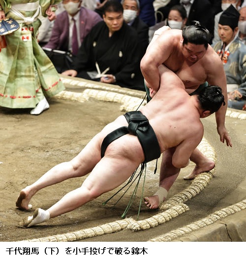 ▽錦木に千代翔馬は錦木が小手投げ。