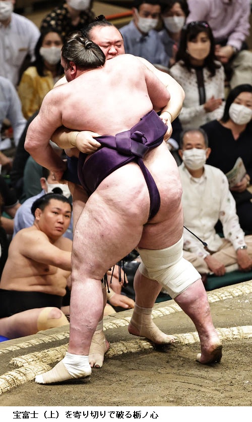 ▽栃ノ心に宝富士は栃ノ心が寄り切りで初白星を挙げました。