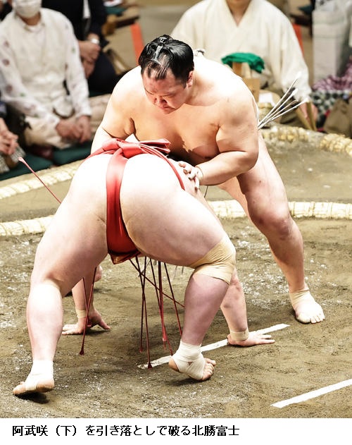 ▽阿武咲に北勝富士は北勝富士が引き落としで初白星です。