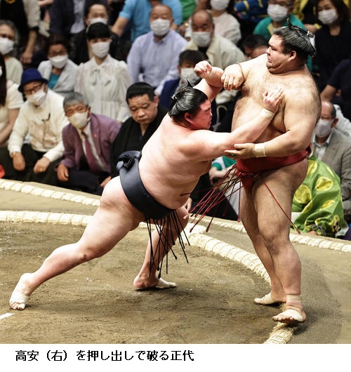 ▽大関 正代に高安は正代が押し出しで初白星を挙げました。