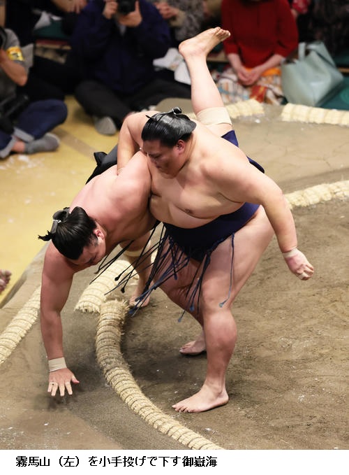 ▽霧馬山に大関 御嶽海は御嶽海が小手投げ。