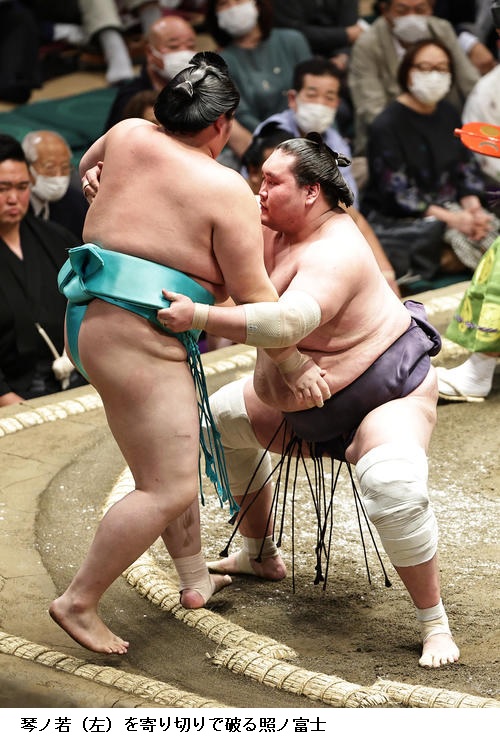 ▽琴ノ若に横綱 照ノ富士は照ノ富士が寄り切りで3勝目。琴ノ若は初黒星です。