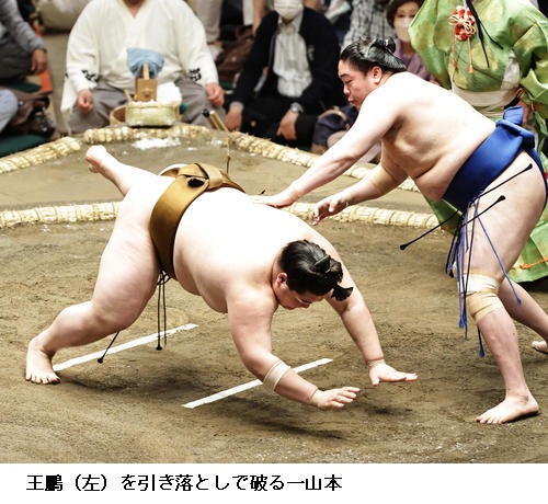 ▽王鵬に一山本は、一山本が引き落としで5連勝。