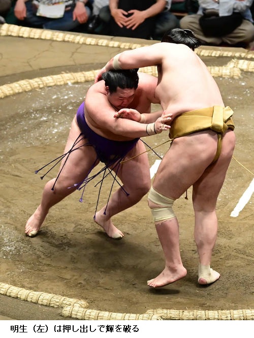 ▽輝に明生は、明生が押し出し。