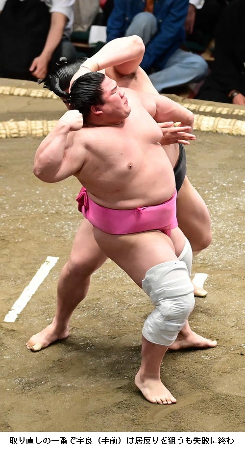 ★宇良 攻めていたつもりだった。(取り直しは)もう一番頑張ろうと思いました。狙いは何もなかったです。(中盤戦に向けて)元気な相撲を見せたい。