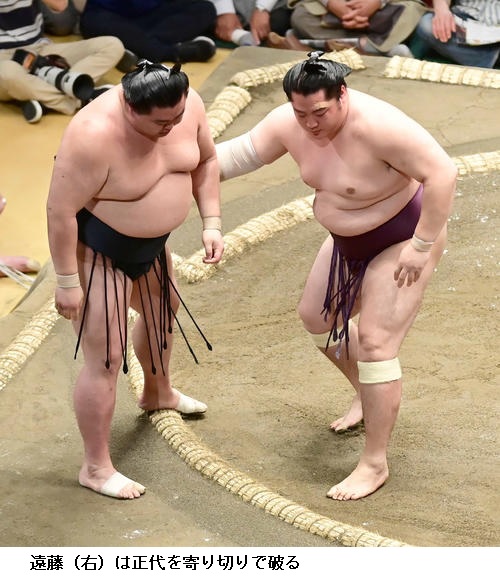 ▽遠藤に大関 正代は、遠藤が寄り切り。