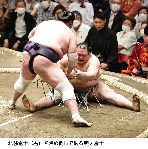 大相撲夏場所5日目 横綱 照ノ富士は北勝富士を破り4連勝 ―― 大相撲夏場所は5日目、横綱 照ノ富士は平幕の北勝富士を破って、2日目から4連勝としました。
