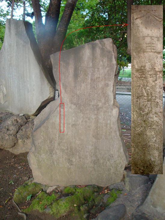 北十間川の北側沿いの道を引き返し隅田川に向けて歩く。工事現場とこの道は今のところ板1枚の防御柵で囲まれているが、11月1日からはどうやらこの道は平成24年4月まで通せんぼになるらしい。塀に描いてある東京スカイツリーの完成予想図も見られなくなるわけじゃ。ここから浅草方面を見るとかの有名な金色に輝く「???塔」が垣間見える。源森橋から三つ目通りを北上し言問通りに出ると、昨日の「詩仏三碑」の最後の一つ三囲神社にある「本松齋一得翁之碑」を探しに行くことにした。境内で目的の石碑を探すがなかなか見当たらない。それにどの石碑も古いもので、表面が風化していてよく読めない。本殿を清掃している宮司?さんに「ここに、大窪詩仏の篆書の碑があると聞いてきたのですが?」と訊ねると、「ああ、それは百花園にあります」という、素気ない返事。最後に半分諦め気分で大国神・恵比寿神の社の左手にあった石碑群の中に辛うじて「本松斎一得翁之碑」と読み取れる碑を見つけた。読み取れない文面の最後にかすかに「天保三年 開溝南篆額 大窪行撰并書 廣群鶴刻」と読みとれた。はてさて、この「本松斎一得」とは如何なる人物なるや。帰宅後調べてみた。