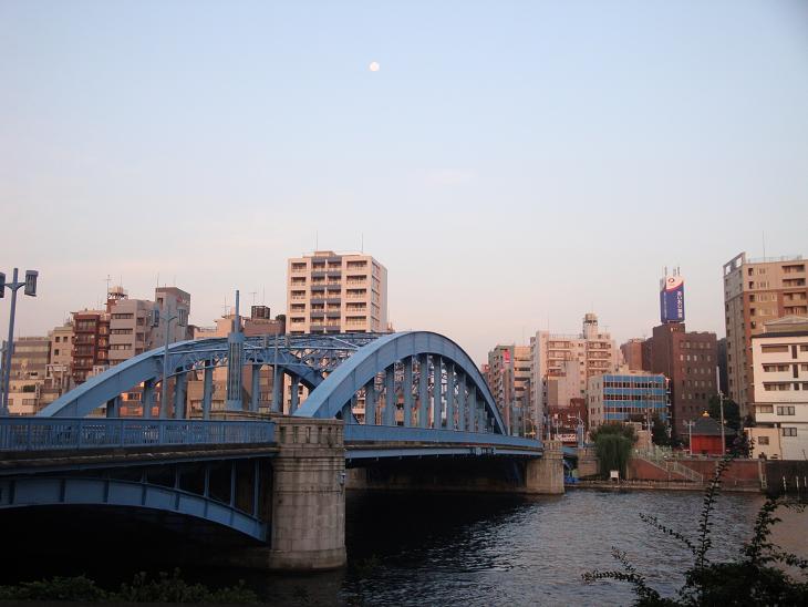 今朝は、昨日とは逆のコースを回ってみた。月は昨日よりやや痩せて、西空のやや高い位置に明るく輝いている。白鬚橋にかかる頃からだんだんしらみはじめ、白鬚橋を渡りながら正面の高速6号線の上ではかぎろひが立っている。かえりみすれば、下弦に近い月が西空にいまださまよっている。桜橋にかかる頃にはすっかり明るくなっていた。言問橋にかかるてまえで猿若にすむU氏と出会う。あたりを見回していた所為か声を掛けられたときは、一瞬何方かわからなかった。
