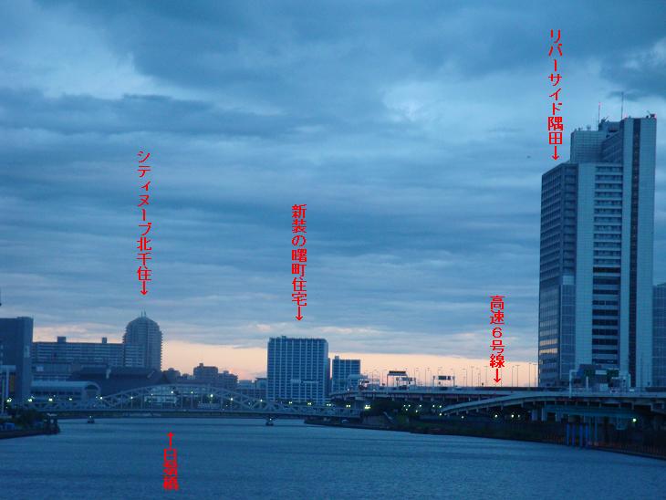 東京の日の出は5時30分頃である。まだ暗い隅田公園を抜け、吾妻橋にかかる頃からようよう白け始め、都営浅草線の本所吾妻橋駅手前の浅草通りに入る頃になって、あたり一面が明るくなり、東の空が朝焼けに染まり始める。