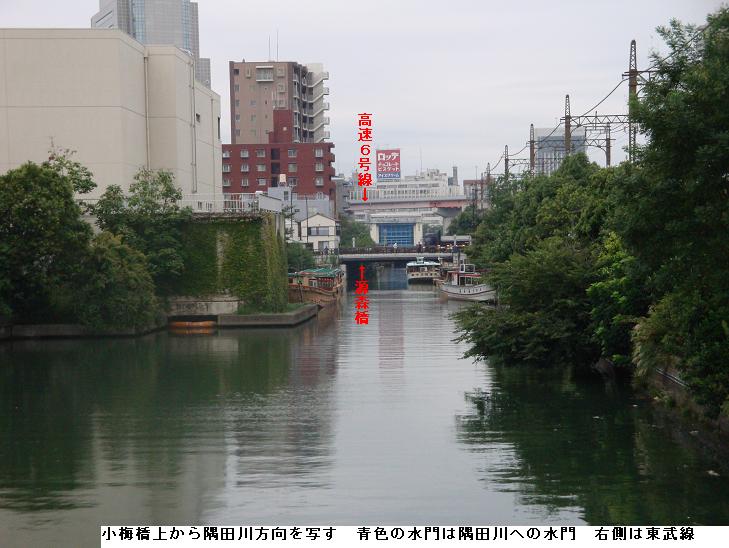 橋上より枕橋と水門を臨む