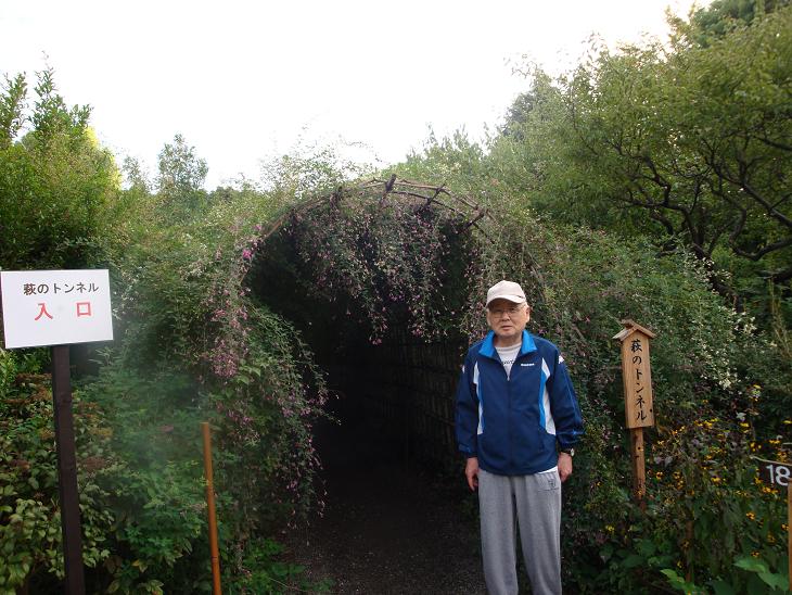 昨日も今日も朝から雨。今日の徘徊は諦めたものの午後から雨も上がり薄日さえ射してきた。今日は都民の日で百花園は無料で入場できるし、萩も見ごろに違いないと、午後4時過ぎに家を出て百花園へと足を伸ばした。ハギを竹の柵にそわせてトンネル状にした園路は百花園の名物である。9月には全長約30mにわたって花のトンネルになるという。百花園に着いたのは4時半をすぎていて、園内には「七つの子」の曲が流れていて5時には閉園であることを知らせていた。
