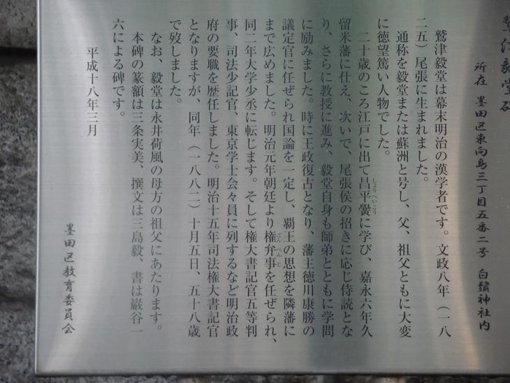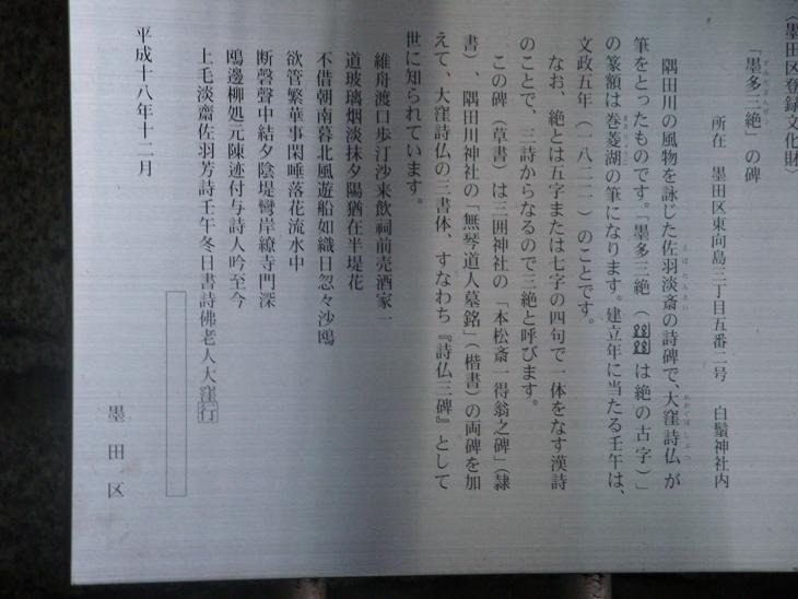 百花園を出て白鬚神社の境内を通ると鷲津毅堂碑と「墨多三絶」の碑をカメラに収めた。
