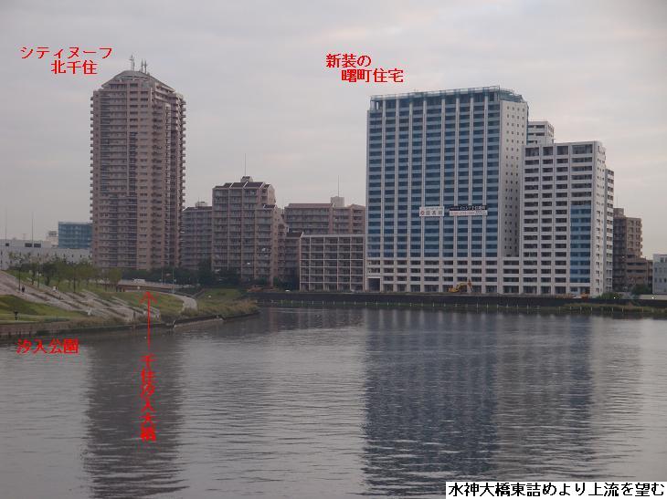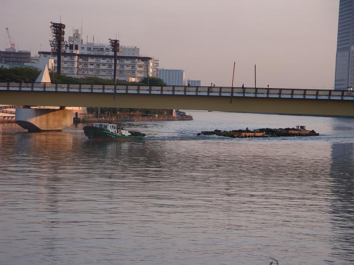 東武橋から引き返し、北十間川の北側を源森橋迄進み、三つ目通りを北上、途中から水戸庭園を抜けて何時もの隅田川の遊歩道に出た。桜橋手前で、親船に曳かれて行く達磨船が桜橋を通過するところであった。桜橋を渡ると、言問橋までの遊歩道を南下し、隅田公園を抜けて、帰宅した。